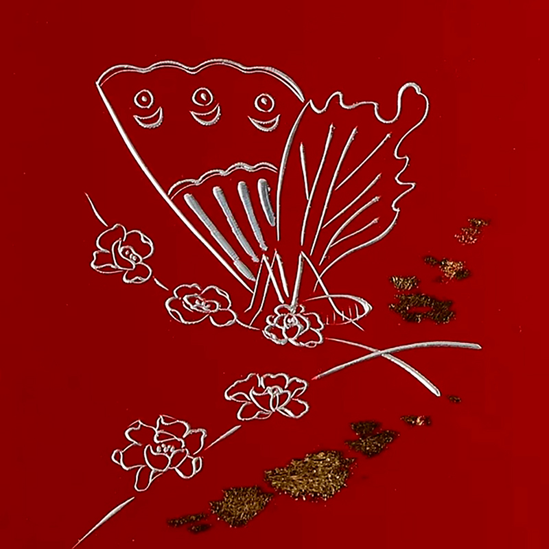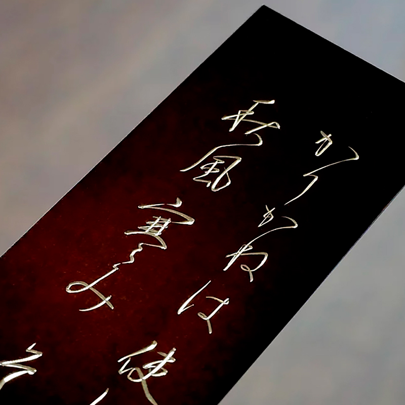 電気が流れている専用の道具(筆)を使って、金属表面に金や銀や銅のメッキをする技法