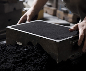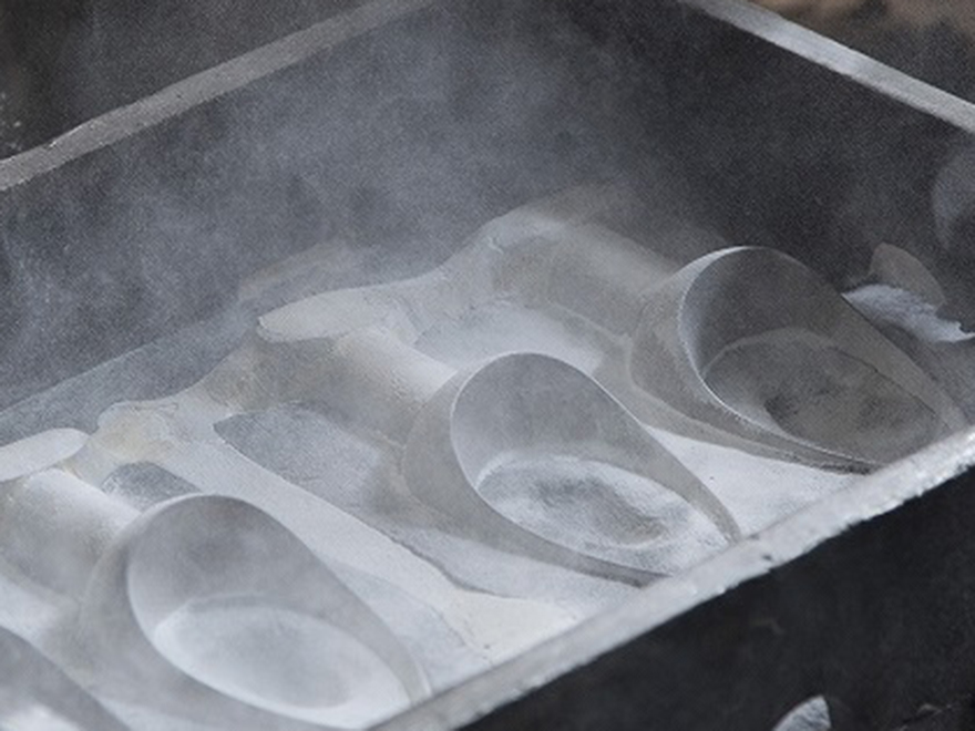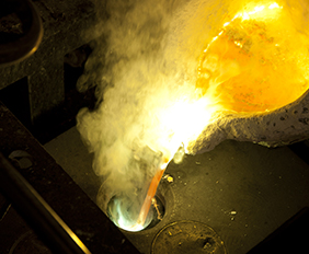 砂型鋳造と比較して生産効率がよく、製品単価も低くおさえることができ、また模様もはっきりとした精巧な鋳物が可能